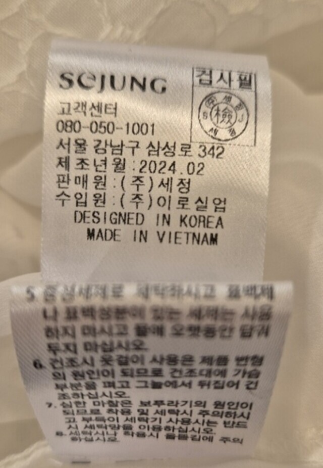 | 6. 세탁방법 및 취급시 주의사항 | 상품상세참조 |