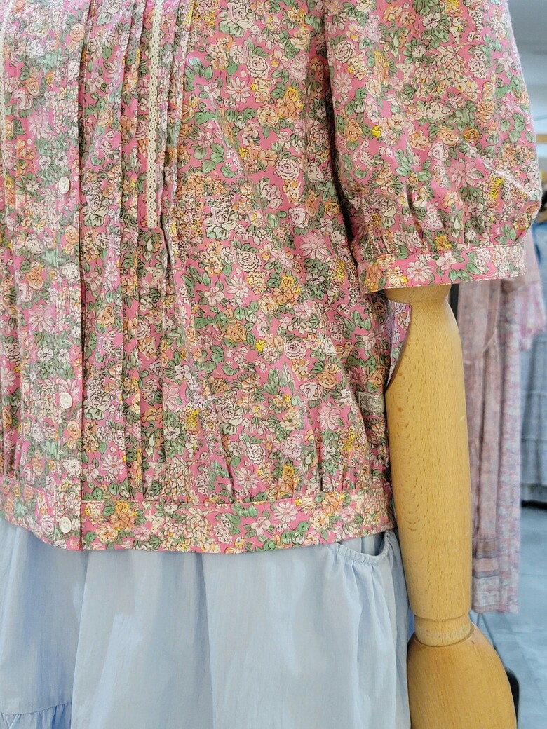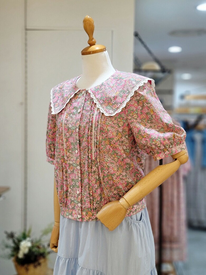 플라워 패턴에 핀턱과 레이스 테이프가 패치된
