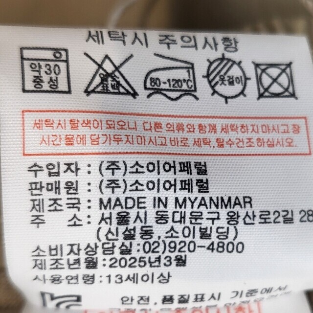 | 1. 제품 소재 (섬유의 조성 또는 혼용률을 백분율로 표시, 기능성인 경우 성적서 또는 허가서) | 상품상세참조 |