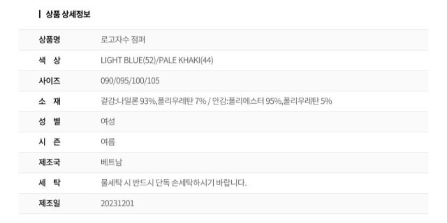 | 6. 세탁방법 및 취급시 주의사항 | 상품상세참조 |