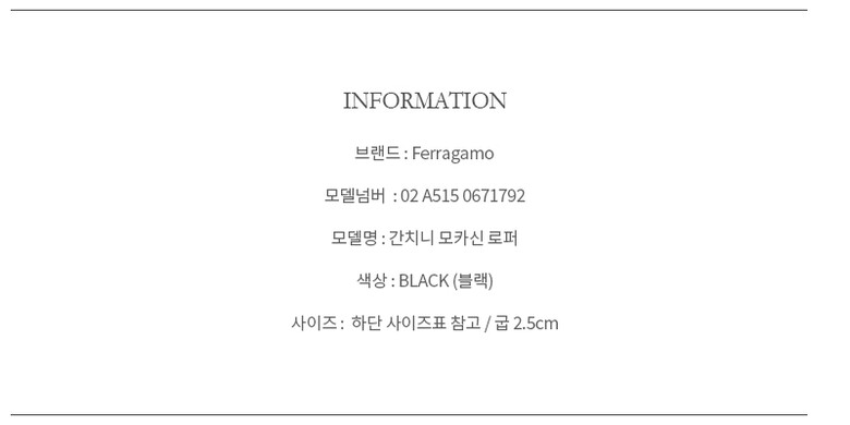 [명품] 페라가모 간치니 오너먼트 모카신 로퍼 블랙 02 A515 0671792