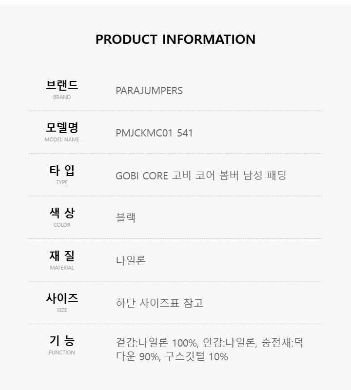 [명품] 파라점퍼스 PMJCKMC01 541 GOBI CORE 고비 코어 봄버 남성 패딩