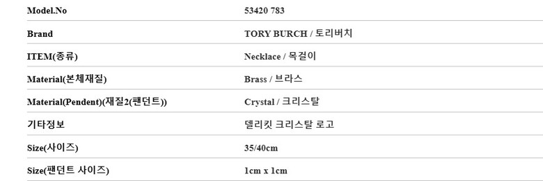 [명품] 토리버치 53420 783 밀러 델리킷 크리스탈 로고 목걸이