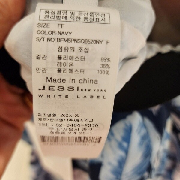 제품소재 : 폴리에스터65%, 레이온35%, 안감-폴리에스터100%