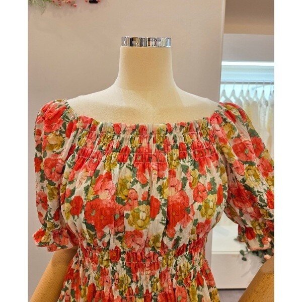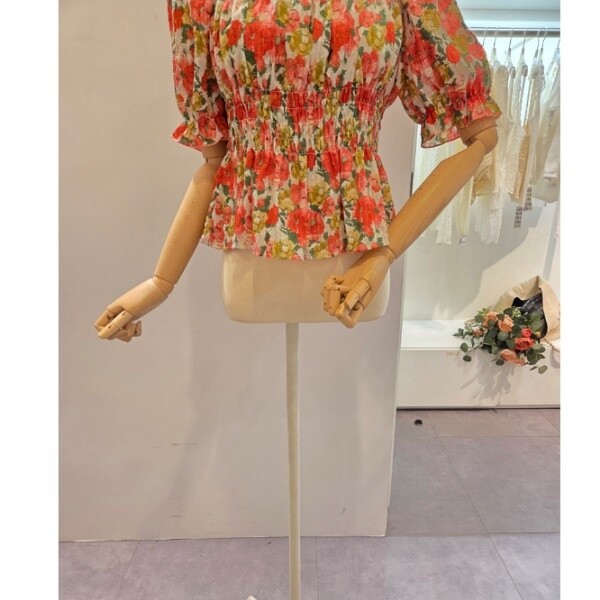 CP5WBL59_스모크 셔링 꽃 블라우스