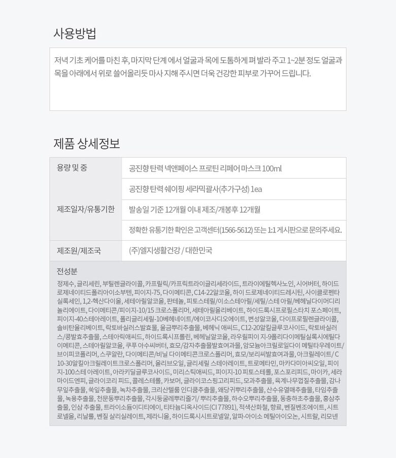 | 1. 용량 및 중량 | 상세페이지 참조 |
