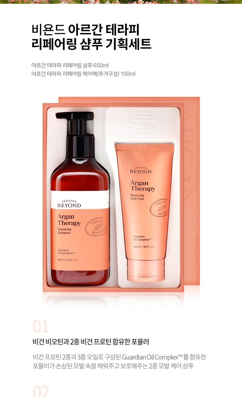 [비욘드] 아르간 테라피 리페어링 샴푸 기획 세트 샴푸 헤어팩 세트