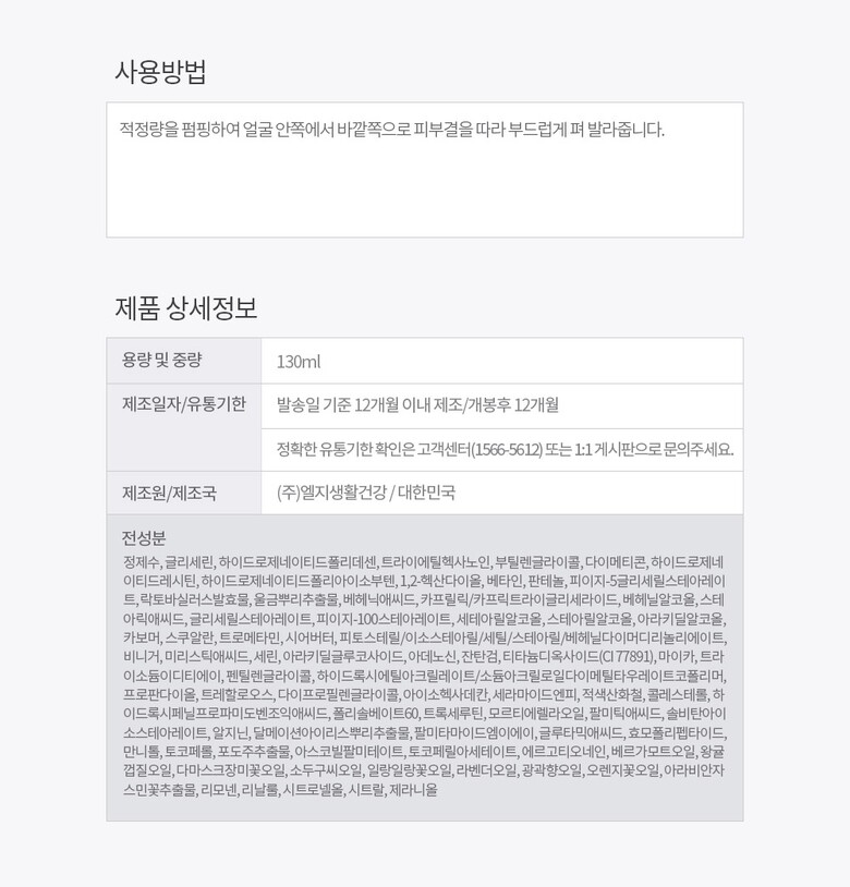 | 5. 제조사 | (주)LG생활건강 / (주)LG생활건강 |