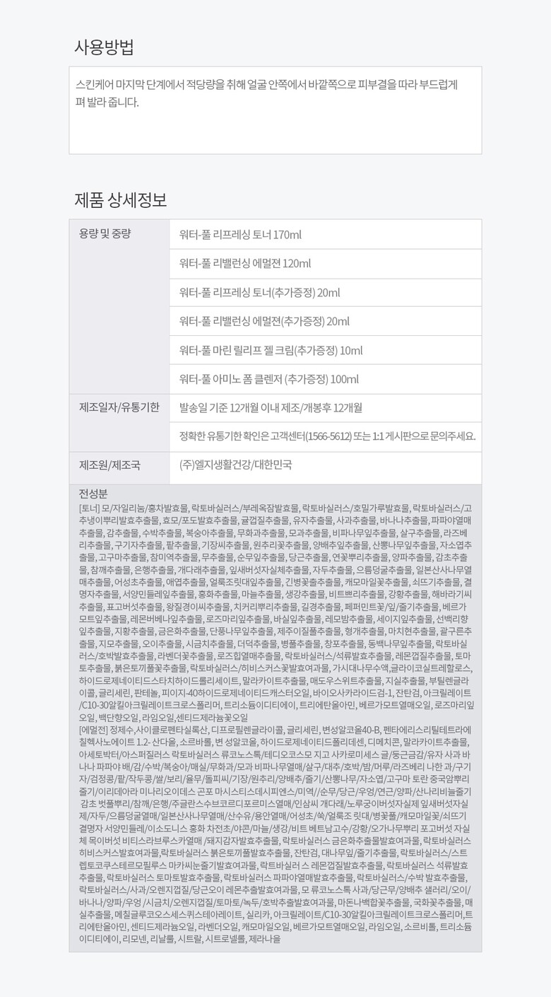 | 1. 용량 및 중량 | 상세페이지 참조 |