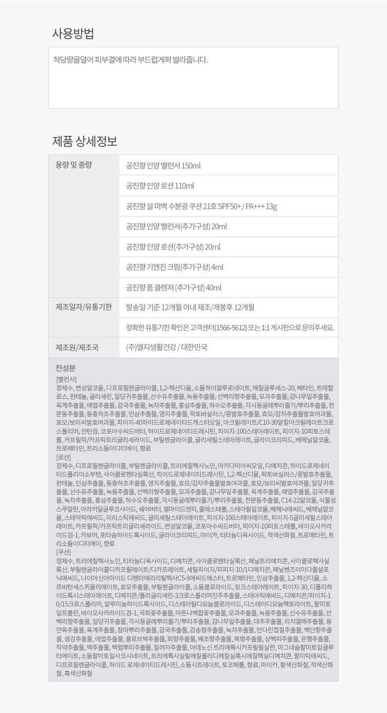 [더후] 공진향 인양 3종세트 (기초2종+수분광 쿠션)