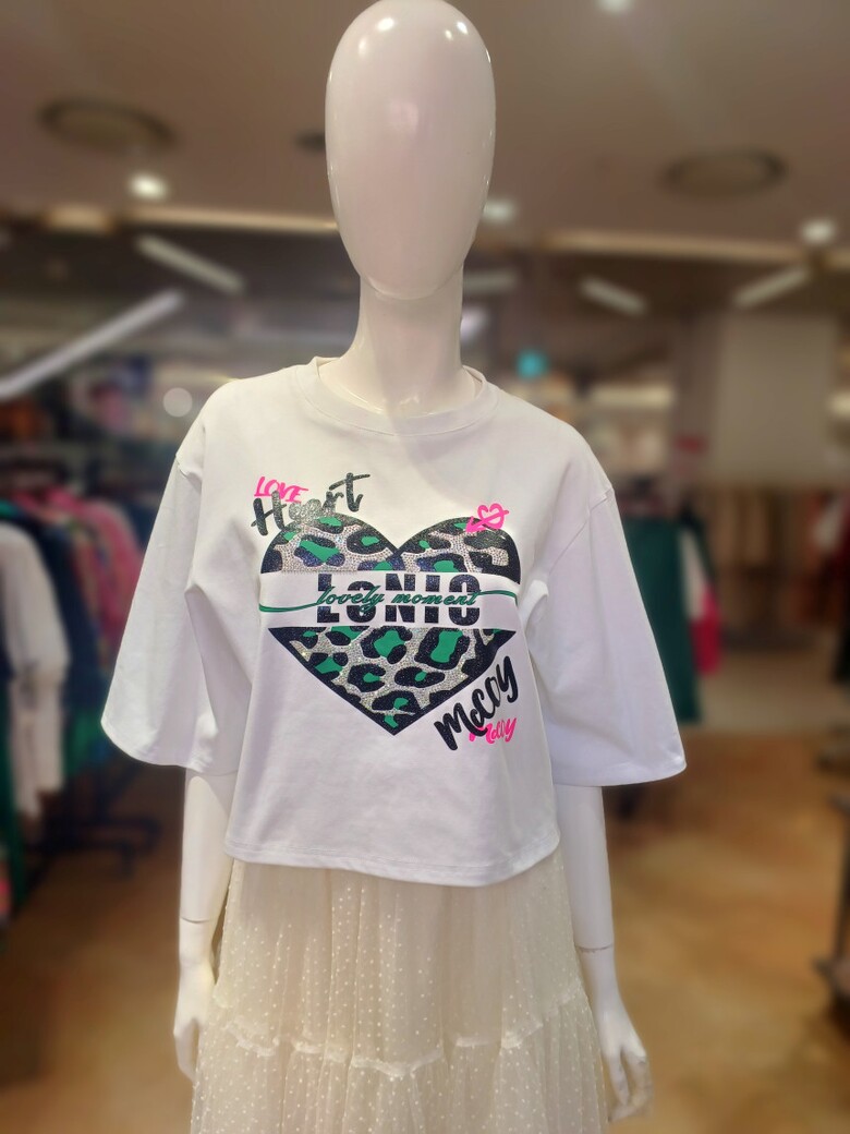 호피큐빅 하트 크롭 티셔츠입니다