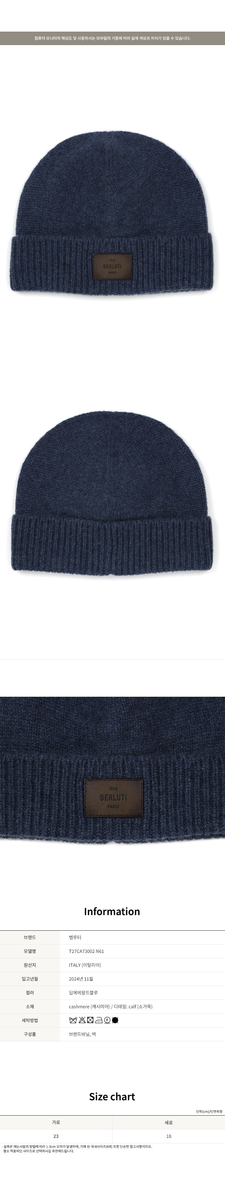 [명품] 벨루티 딥 에메랄드 블루 로고 캐시미어 비니 T27CA73002 N61