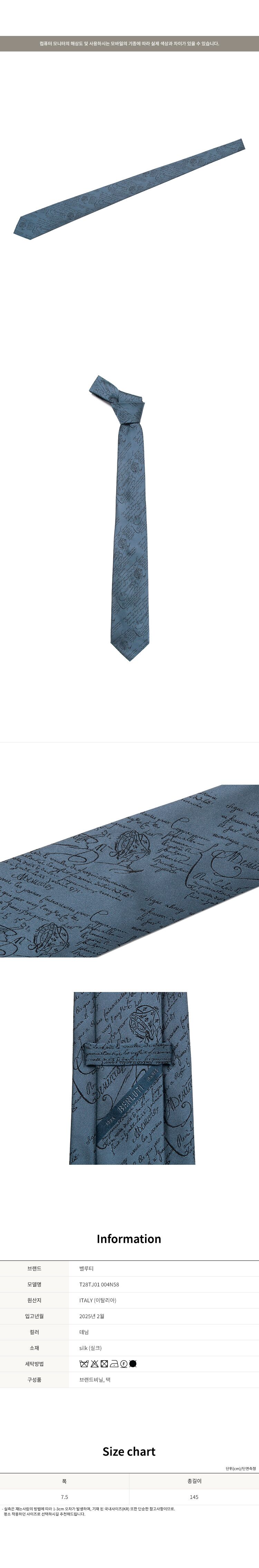 - #리본즈코리아 #T28TJ01004N58 #[명품] #25SS #벨루티 #데님 #클래식 #스크리토 #실크 #타이 #T28TJ01 #004N58 #남성 #패션잡화 #넥타이 #정장넥타이