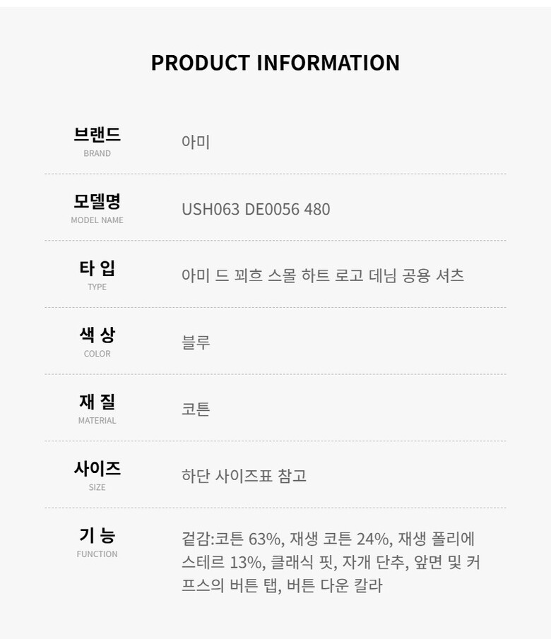 | 1. 제품 소재 (섬유의 조성 또는 혼용률을 백분율로 표시, 기능성인 경우 성적서 또는 허가서) | 상세페이지 참조 |