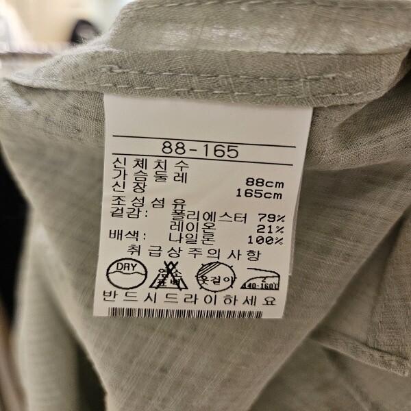 제품소재 : 폴리에스터79%,레이온21%,배색 나일론100%