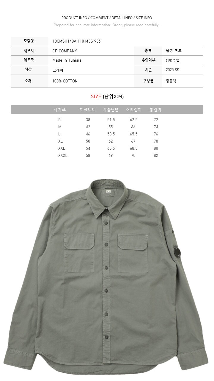 CP 25SS 렌즈 와펜 롱 슬리브 셔츠 그레이 18CMSH140A 110143G 935