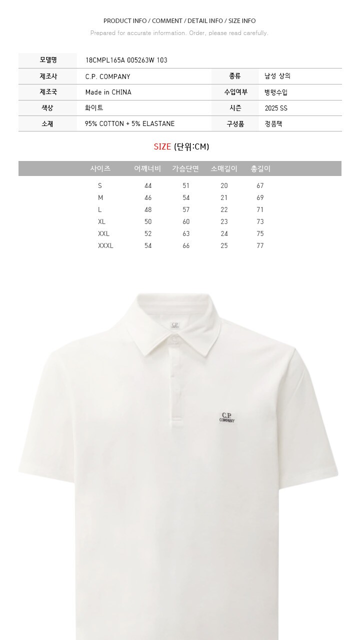 CP 25SS 로고 패치 폴로 티셔츠 화이트 18CMPL165A 005263W 103
