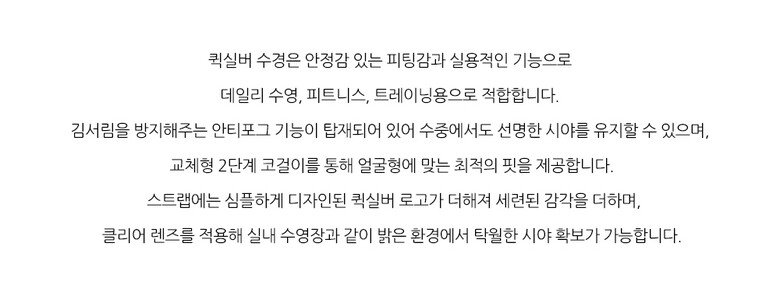 2. 소재 | 렌즈 : 100% 폴리카보네이트 안면패드 : 100% 실리콘 스트랩 : 100% 실리콘 코걸이 : 100% 폴리카보네이트 |