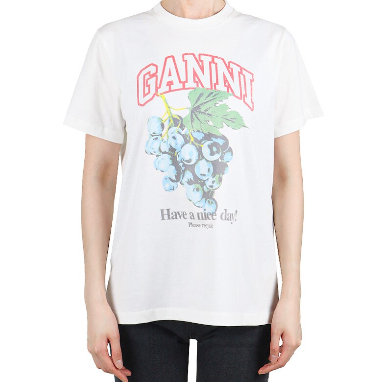 [명품] 가니 25FW 여성 그레이프 프린트 반팔티 에그렛 T4230 135