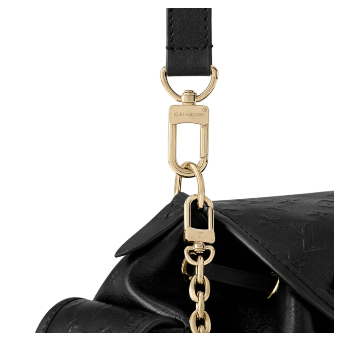 모노그램 볼드 시그니처 패턴을 입힌 카프스킨 소재.