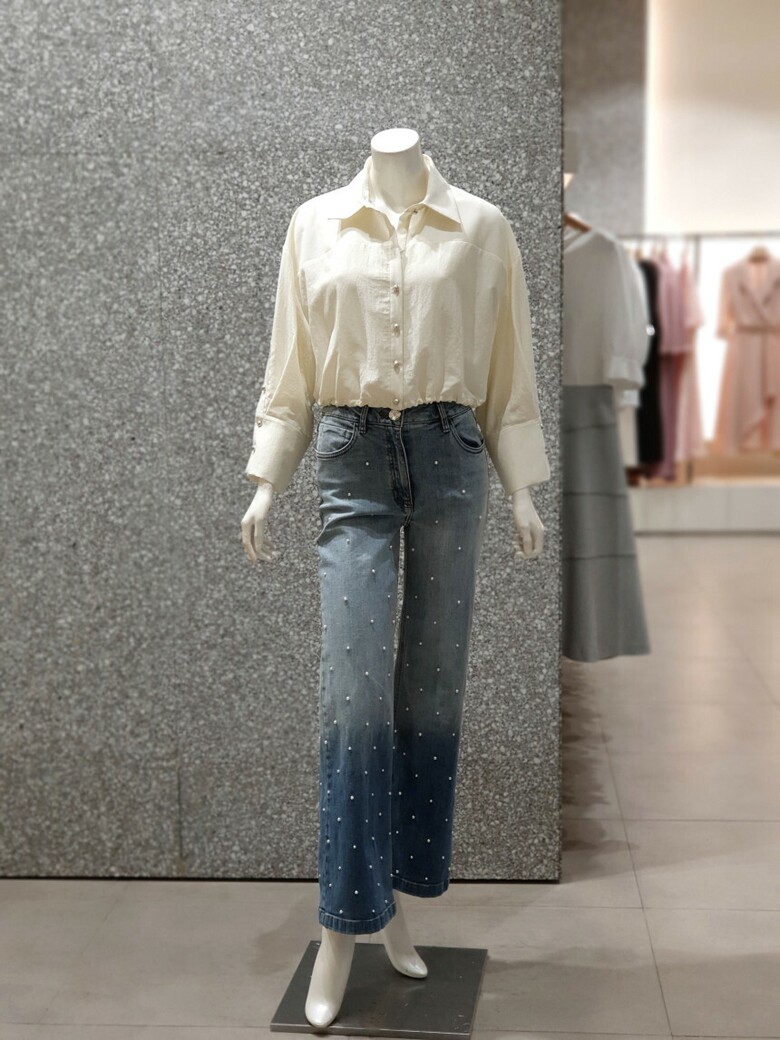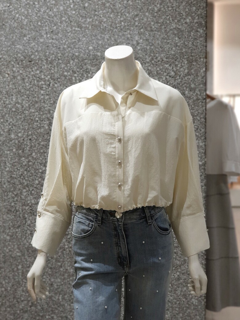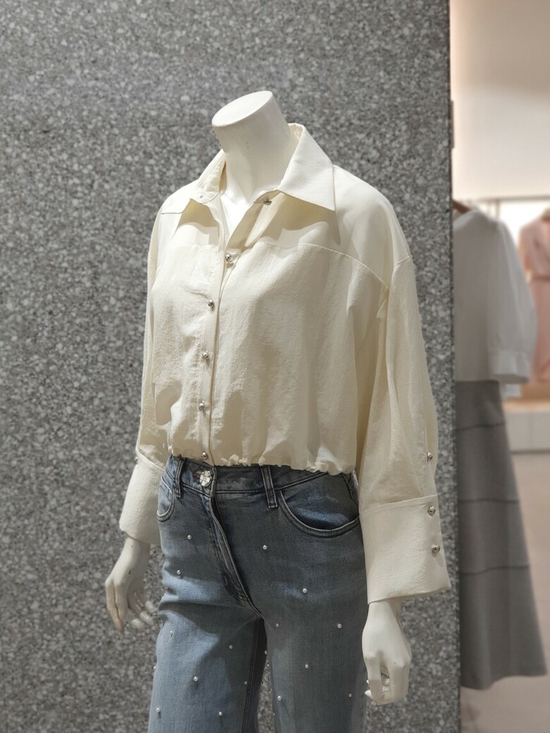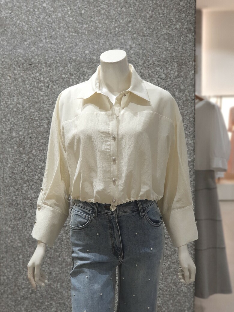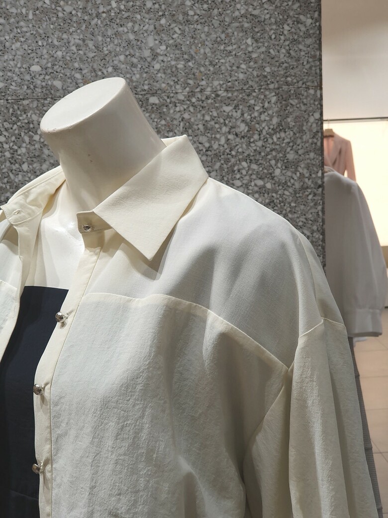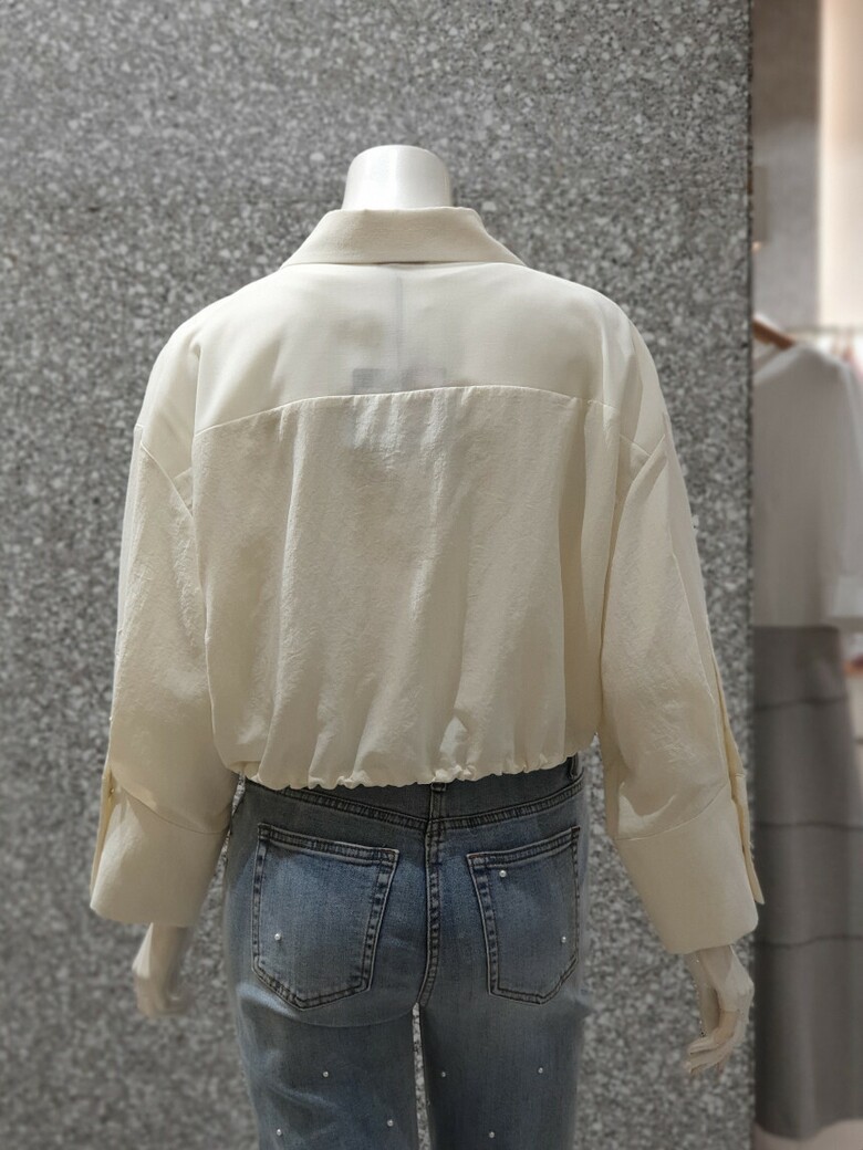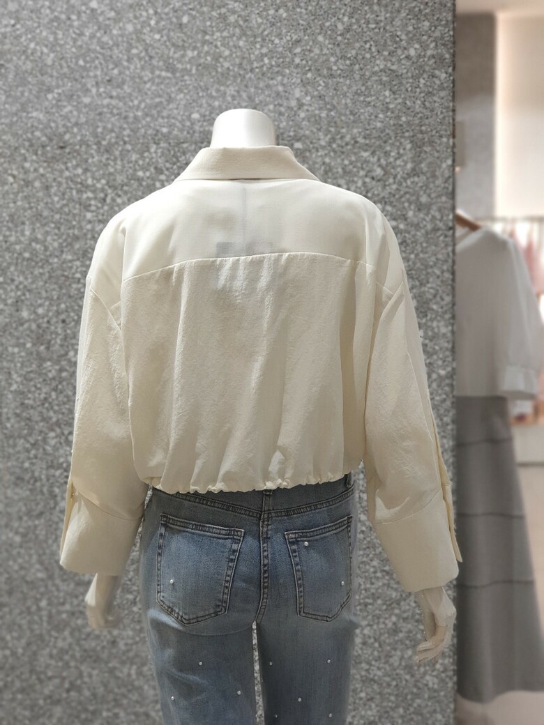 밑단 스트링으로 핏 조절이 가능한 셔츠블라우스입니다.