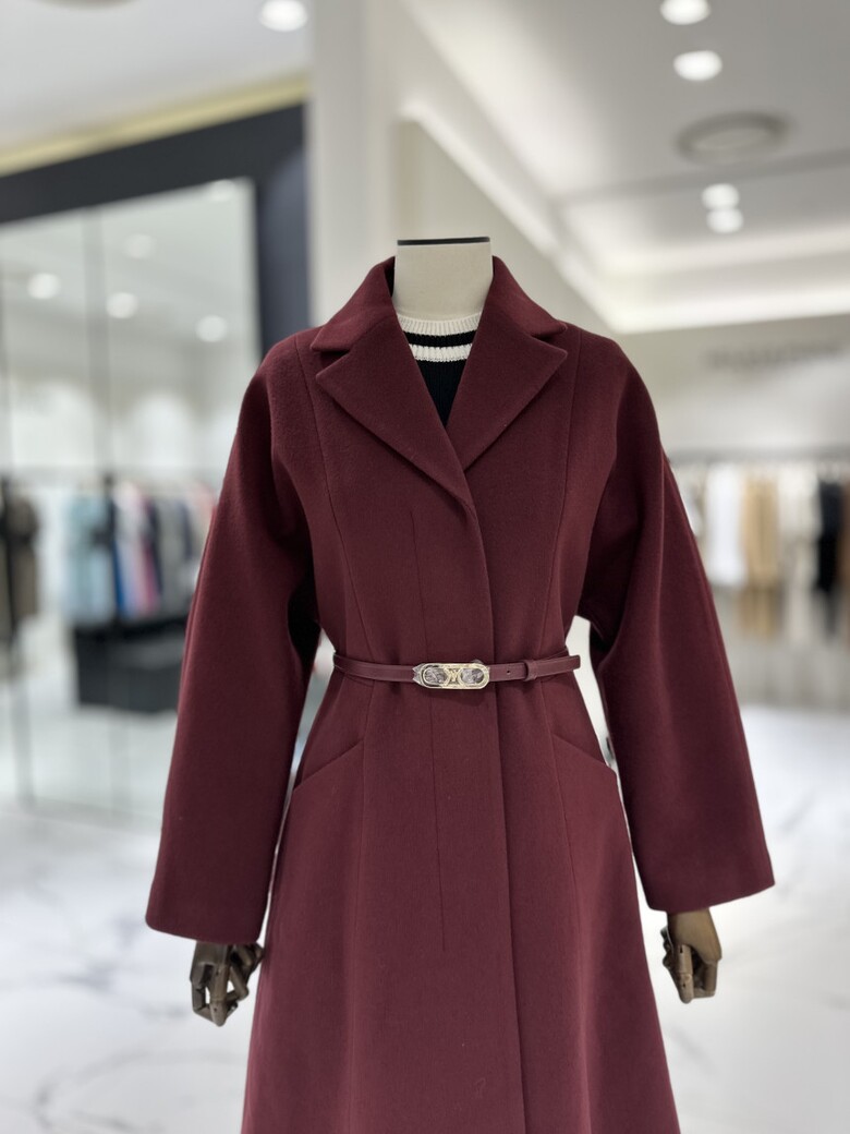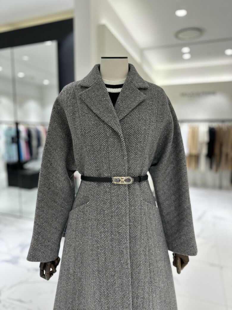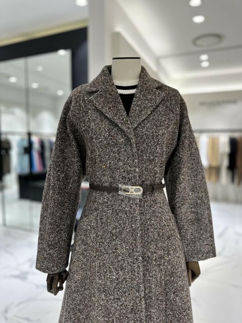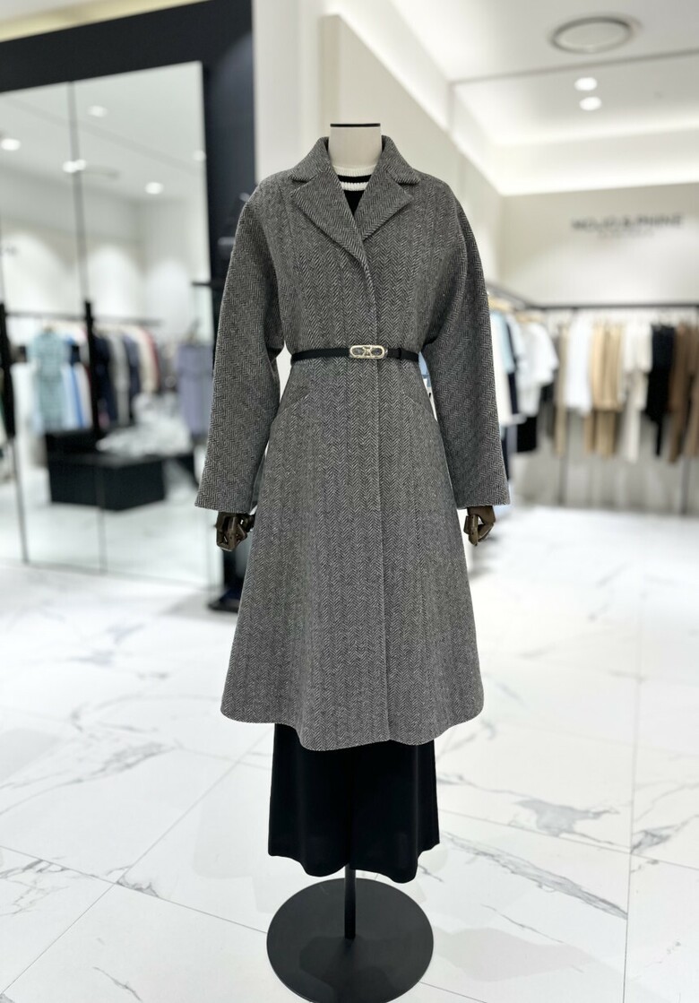 모조에스핀 테일러드 플레어 벨티드 코트 J244MSG423