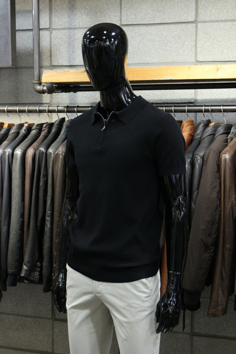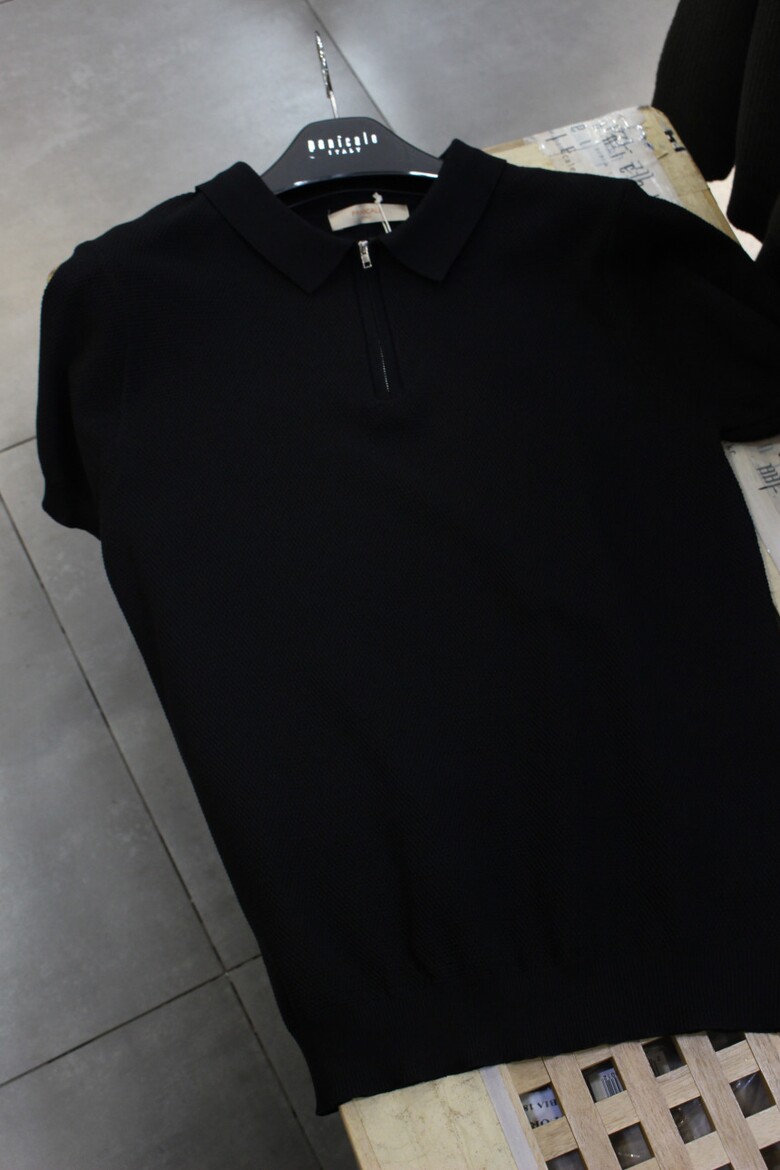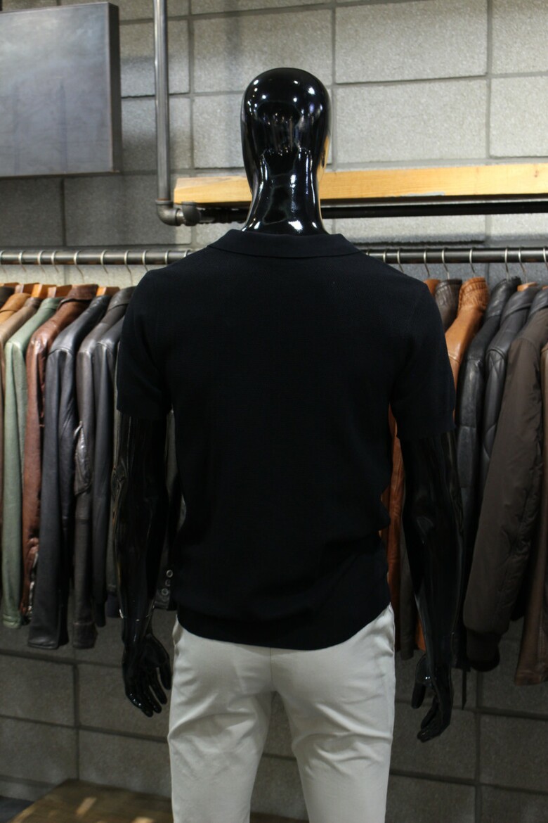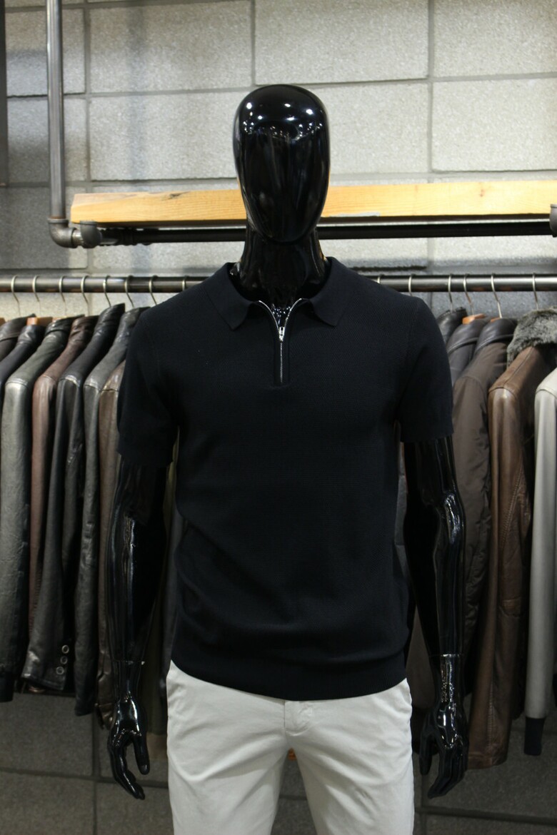 블랙비스코스매쉬 반집업카라 썸머니트티 m-qnit10bk