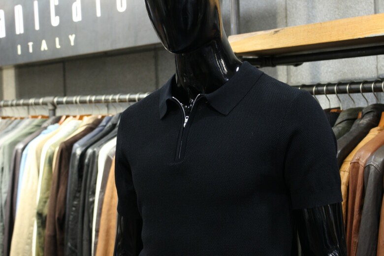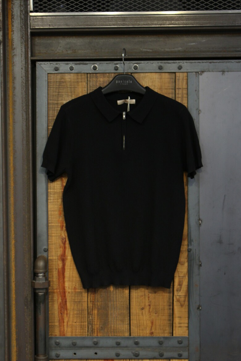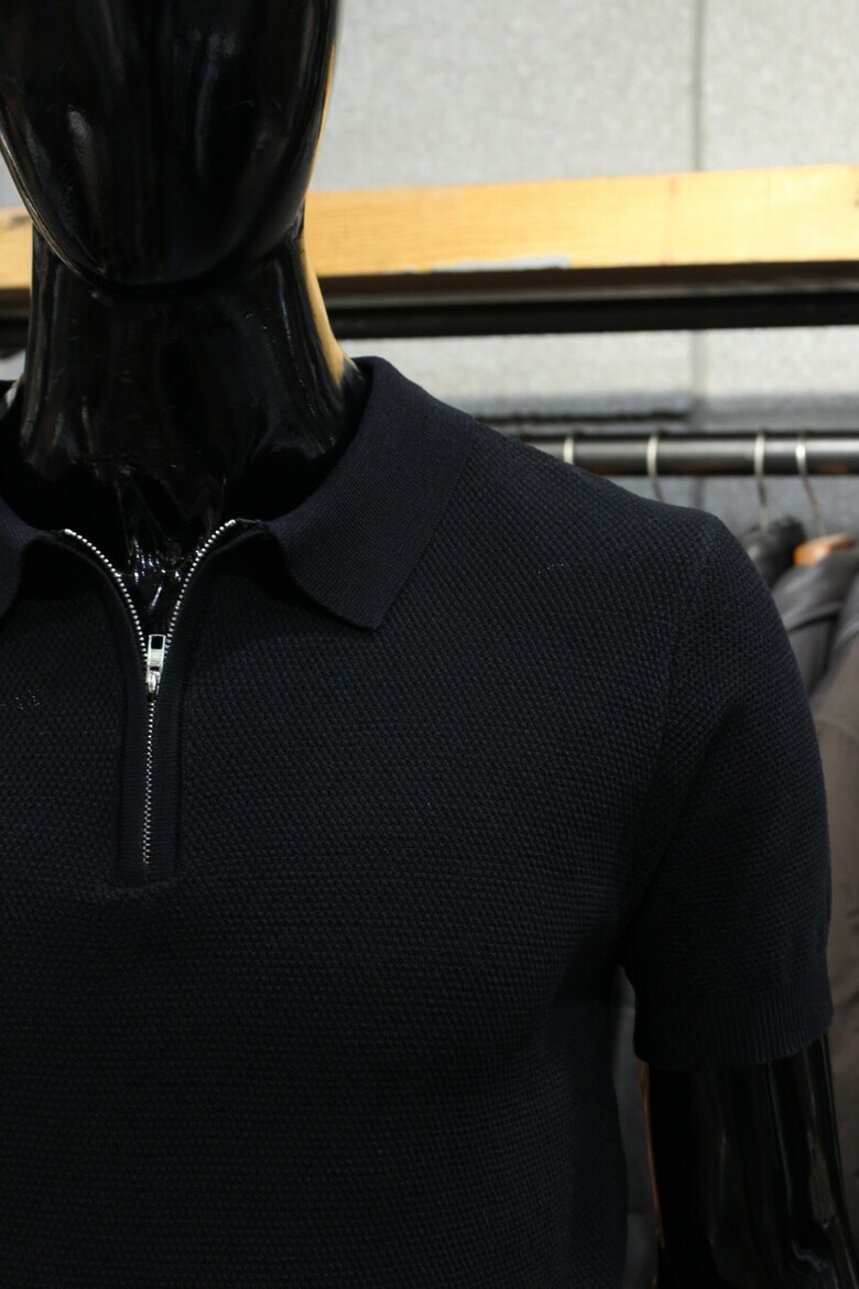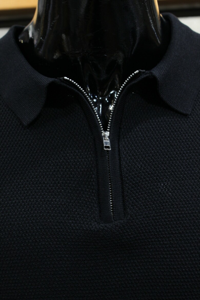 블랙비스코스매쉬 반집업카라 썸머니트티 m-qnit10bk