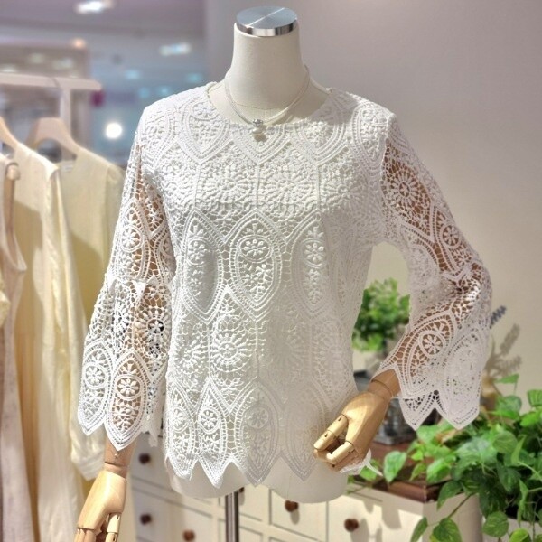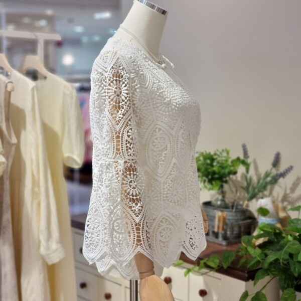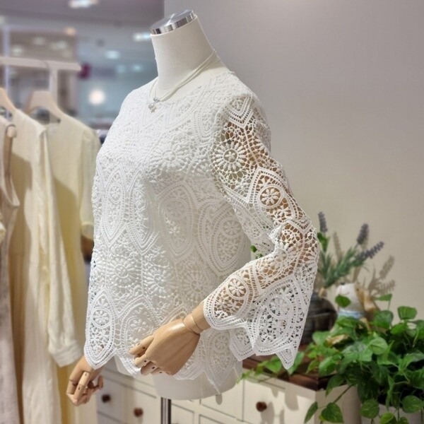 레이스스타일 블라우스안감은 신축성없음9부소매슬림형블라우스