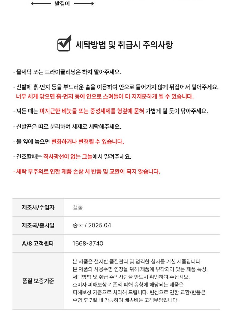 | 6. 취급시 주의사항 | 상품상세참조 |