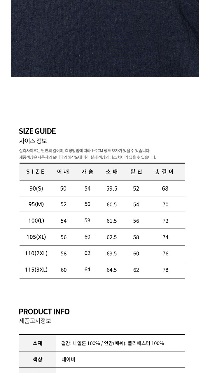 • 처음 배송된 상품상태와 다를 경우(세탁/착용 후 외출하신 경우) 반품이 불가합니다.