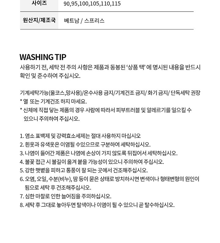 6. 세탁방법 및 취급시 주의사항 상세페이지 참조
