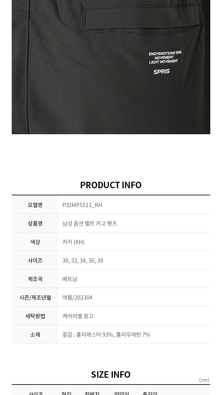 스프리스 남성 옵션 벨트 카고 팬츠 카키