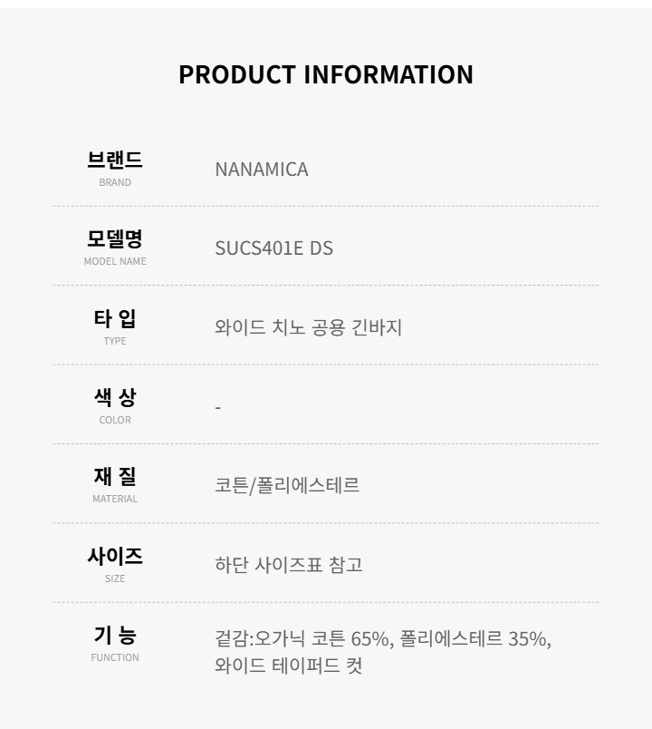 나나미카 바지 SUCS401E DS 와이드 치노 남성바지 여성바지 당일발송