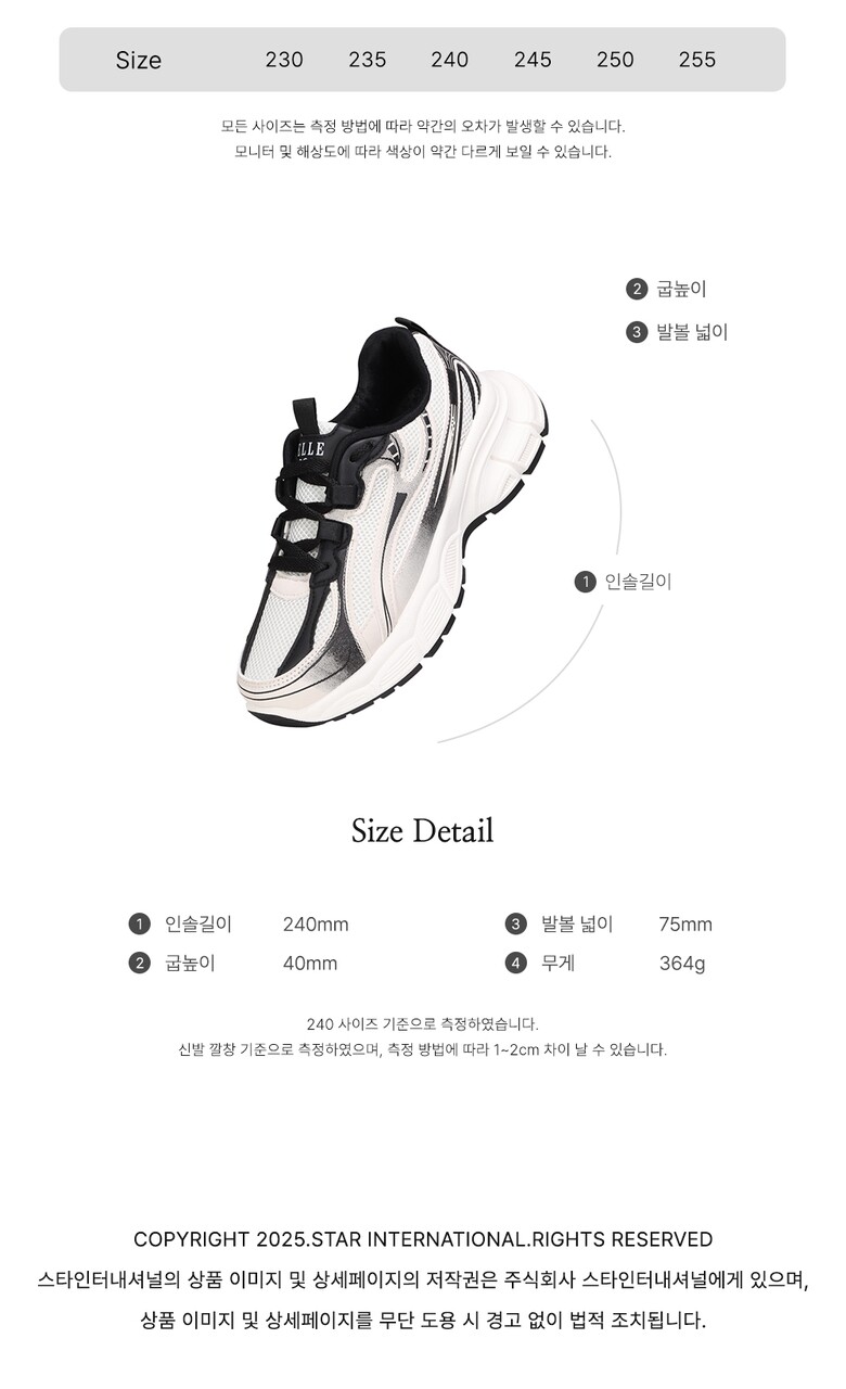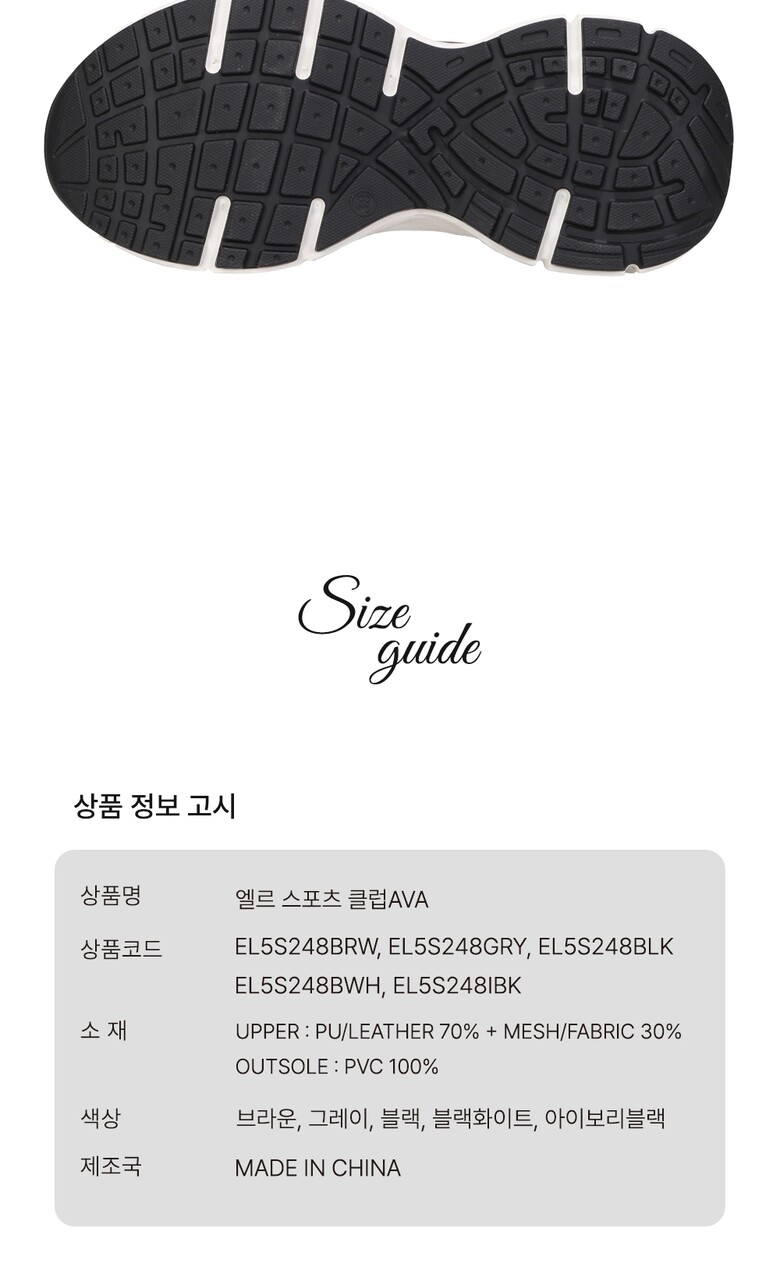 | 1. 제품 소재 (운동화인 경우에는 겉감, 안감을 구분하여 표시) | 상세페이지 참조 |
