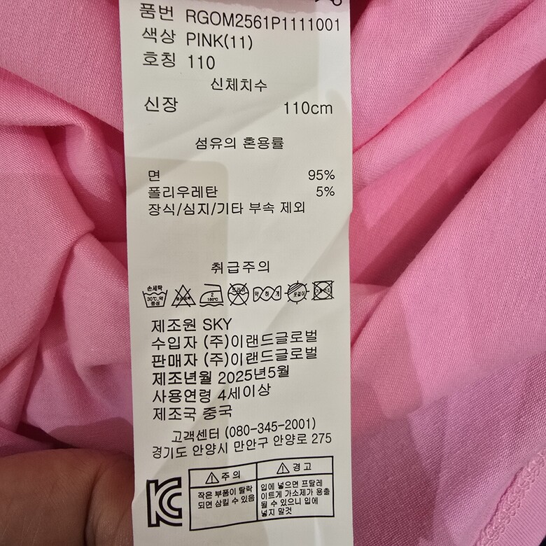 | 6. 세탁방법 및 취급시 주의사항 | 상품상세참조 |