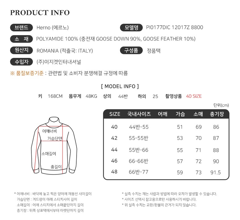 | 6. 세탁방법 및 취급시 주의사항 | 상품상세 참조 |