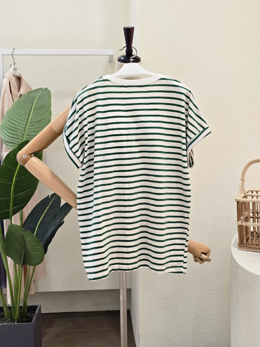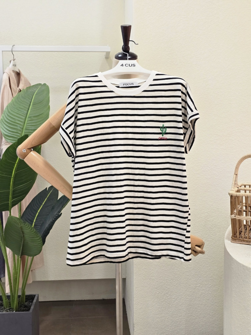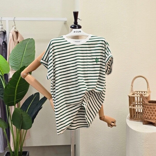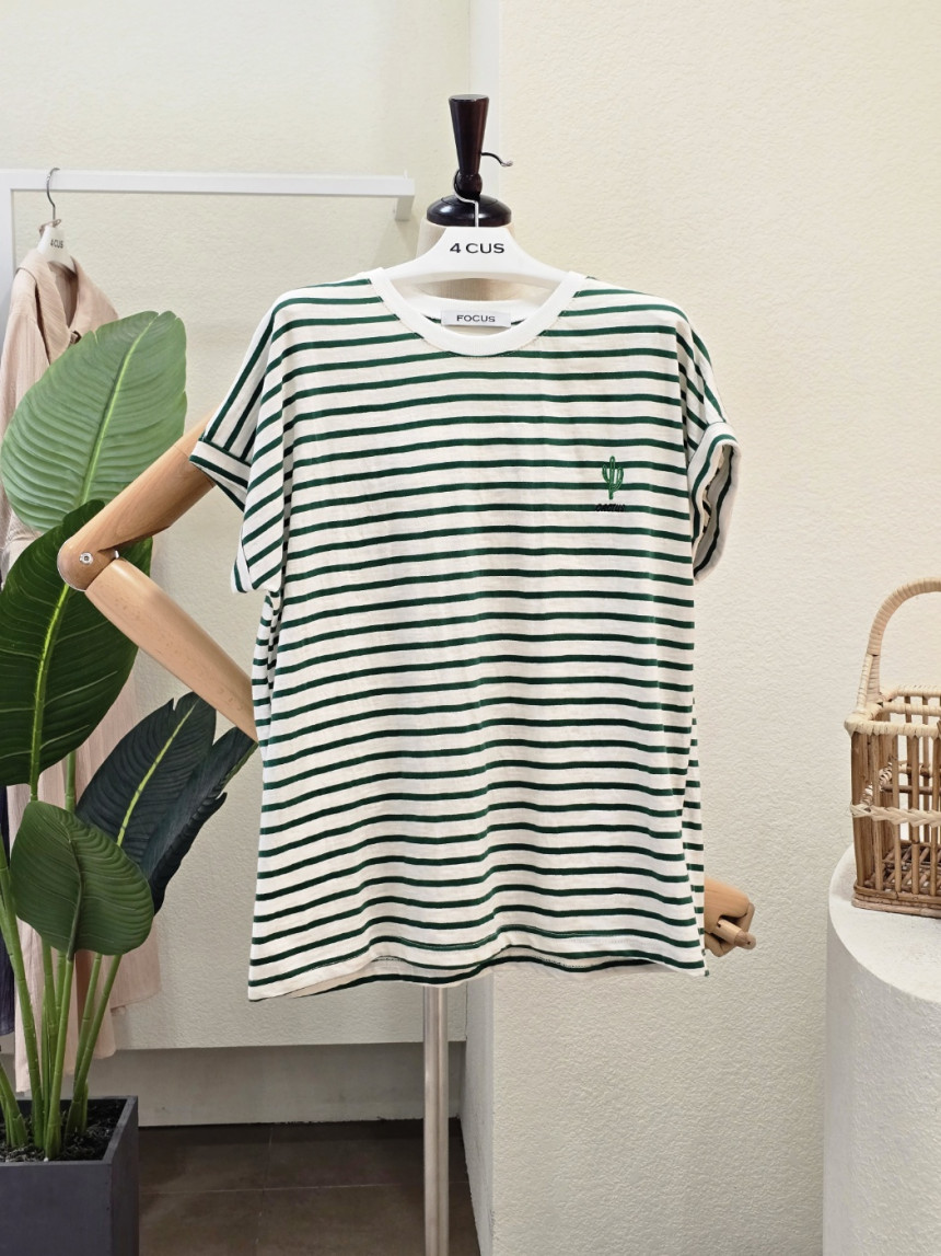 FM5D7TS00995_라운드넥 선인장 줄무늬 티셔츠