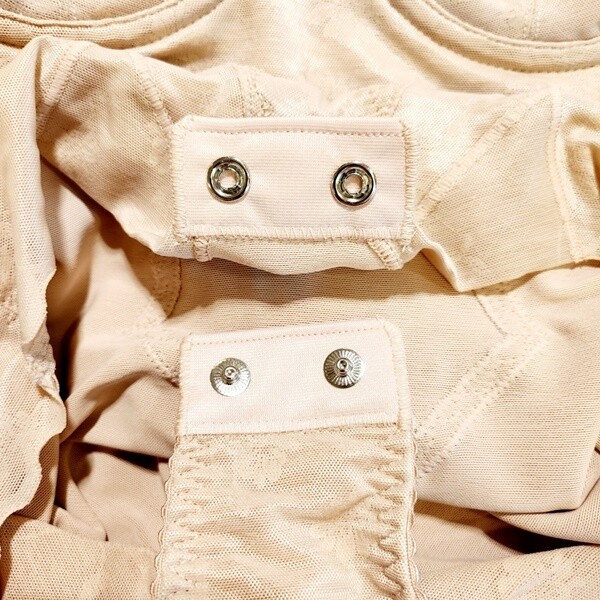 어깨끈을 조절 할 수있어 체형에 맞게 조정해서 착용 할 수 있습니다.복부에 타미는 복부를 효과적으로 눌러주도록 설계되어 착용시 복부 보정효과를 주며 다리에는 헴원단을 사용해 겉으로 라인이 드러나지 않도록 했습니다.