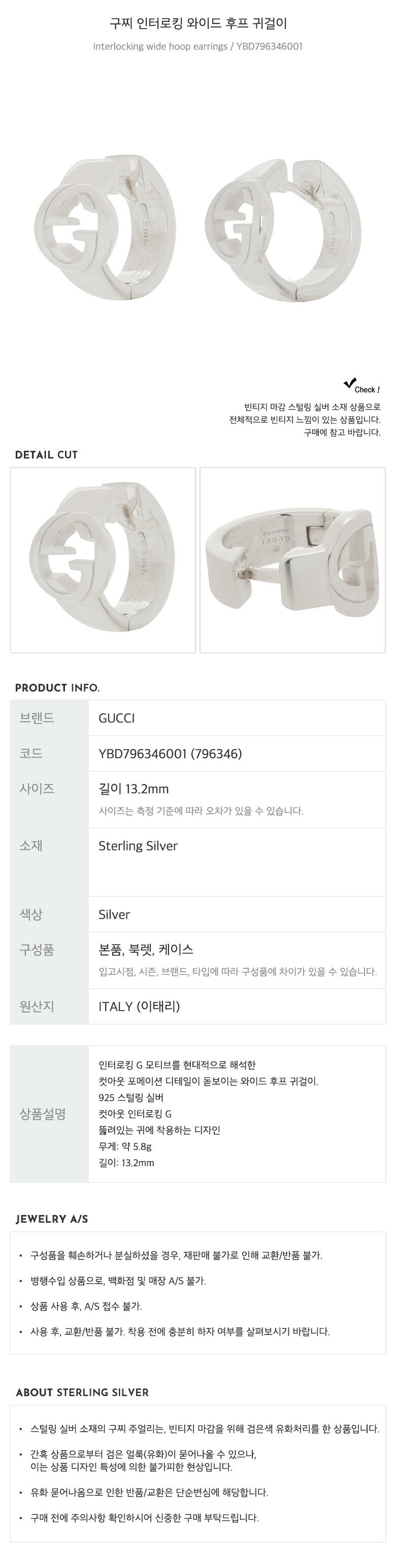 - #리본즈코리아 #YBD796346001 #[명품] #구찌 #인터로킹 #와이드 #후프 #귀걸이 #/ #YBD796346001 #796346 #공용 #시계/액세서리 #귀걸이/피어싱