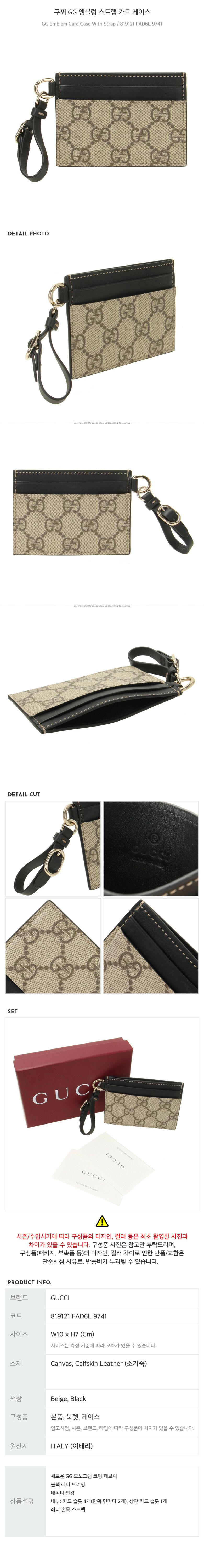 - #리본즈코리아 #819121FAD6L9741 #[명품] #구찌 #GG #엠블럼 #스트랩 #카드 #/ #819121 #FAD6L #9741 #여성 #지갑 #카드/명함지갑 #카드지갑홀더