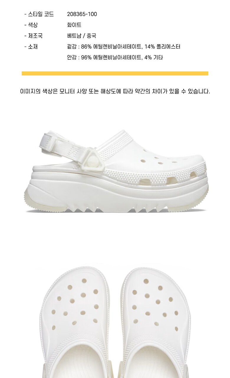 | 1. 제품 소재 (운동화인 경우에는 겉감, 안감을 구분하여 표시) | 상세페이지참조 |