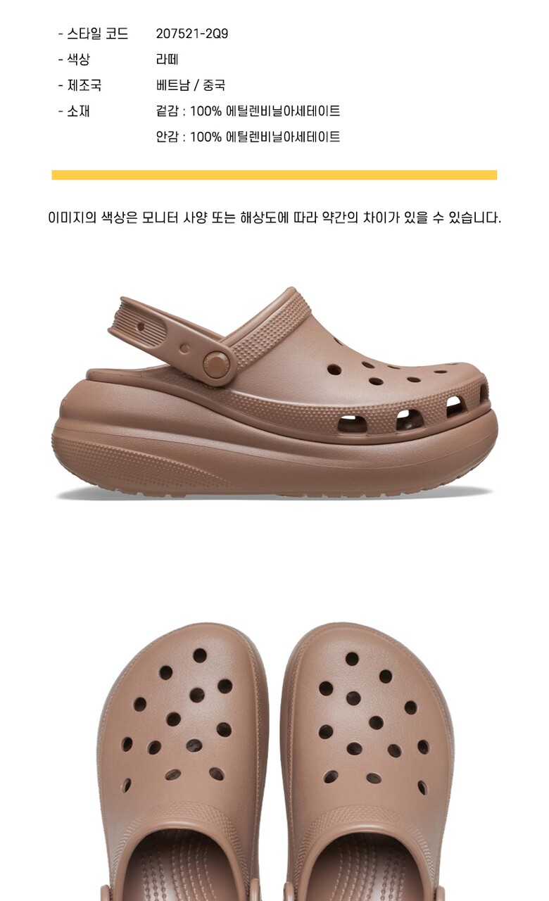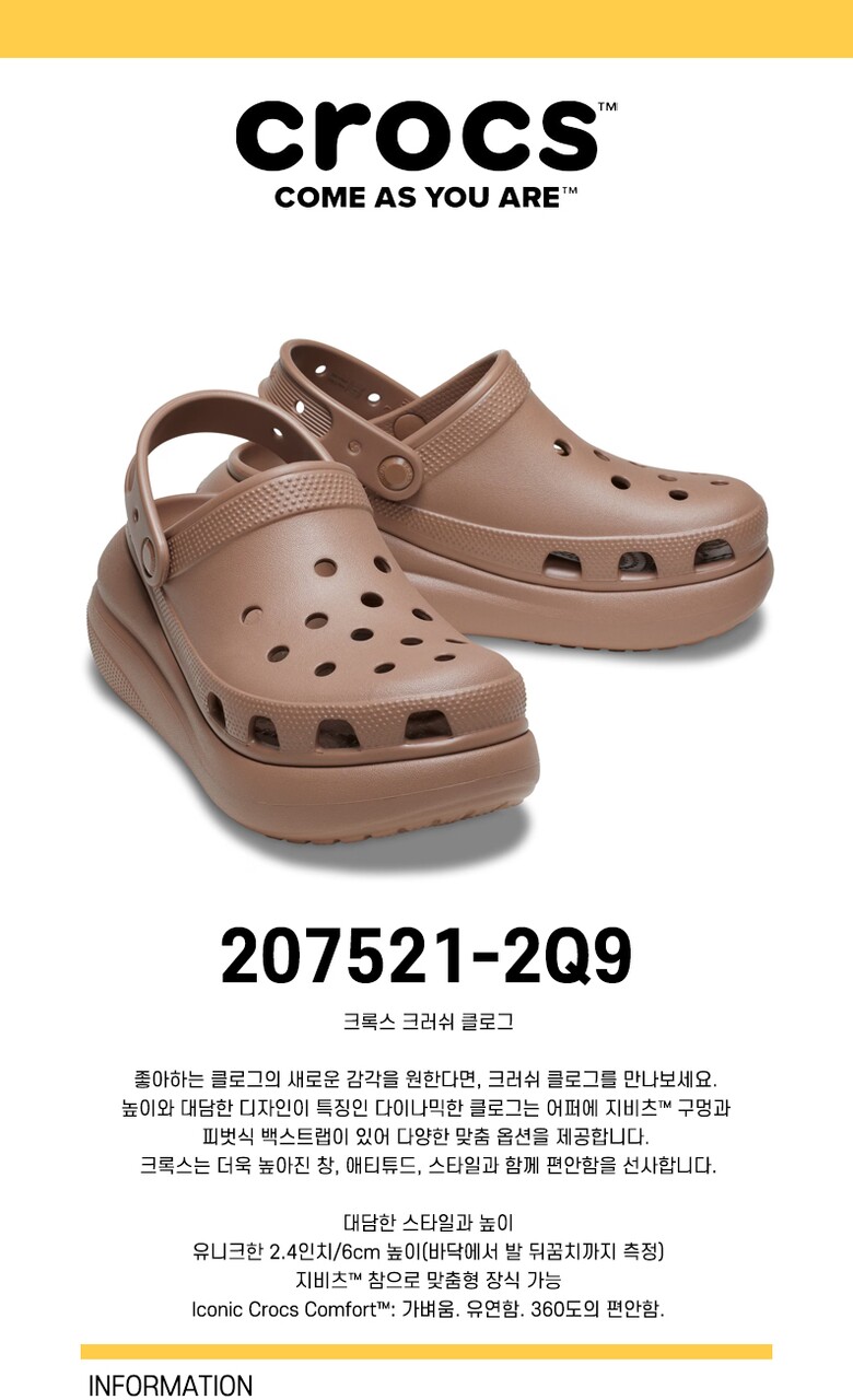 크록스 공용 크러쉬 클로그 키높이 샌들 207521-2Q9