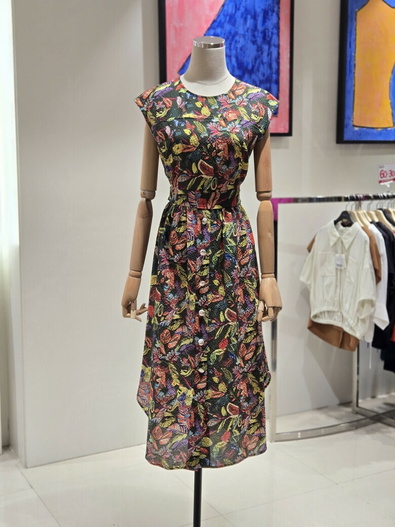 [발렌시아]프린트 버튼장식 리본원피스256MO42