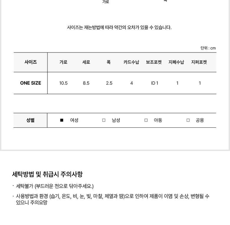 3. 치수 | 가로 11 cm X 세로 9.5 cm X 폭 2 cm |