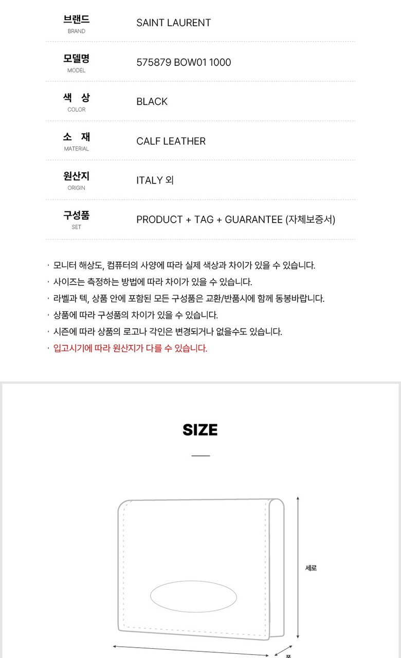 (생로랑) 575879 BOW01 1000 SS25 여성 모노그램 반지갑