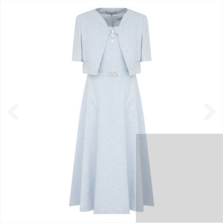 롱한 기장감의 슬리브리스 원피스와 반소매 크롭 자켓이 세트인 상품입니다.