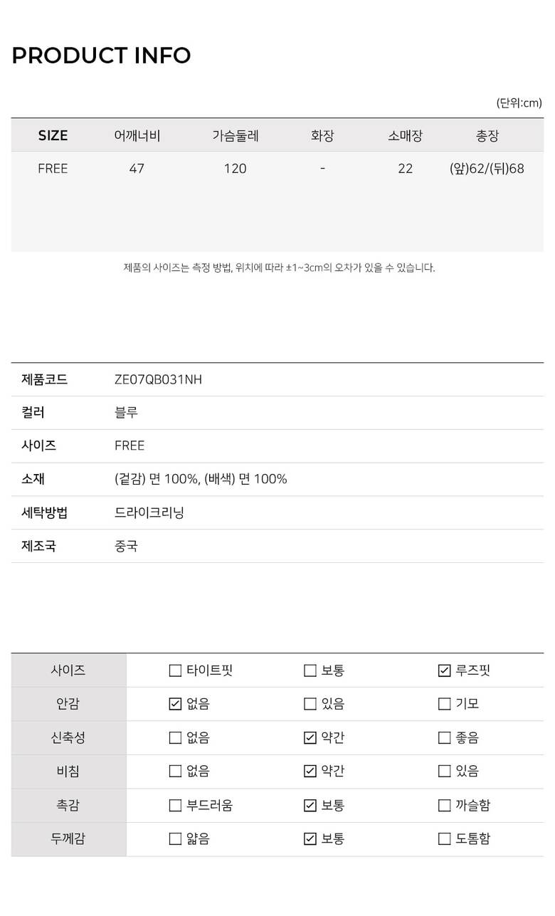 MODEL / 블루(FREE) 착용