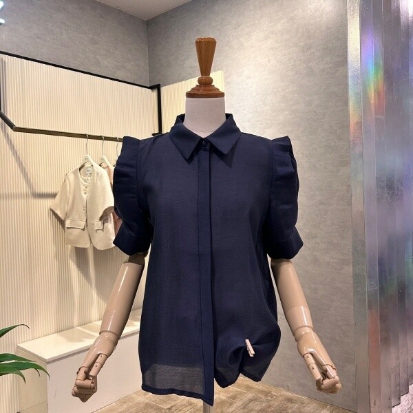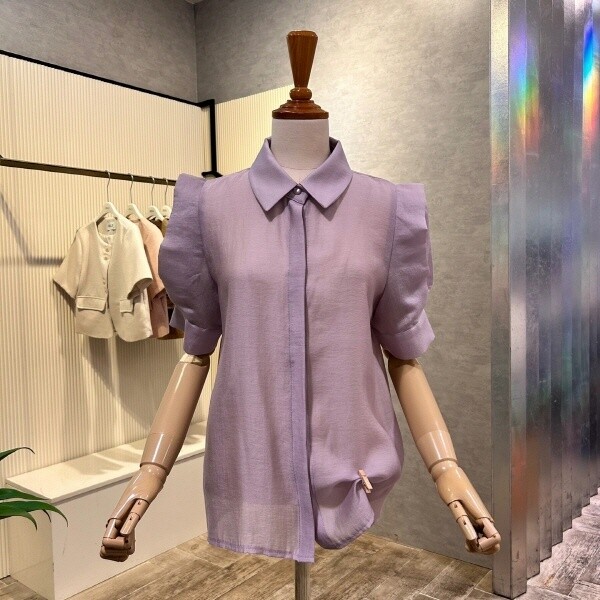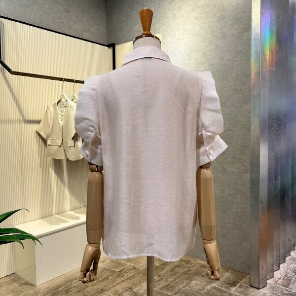 2025년 s/s?신상 퍼프 소매 카라 단추 블라우스 입니다. 세련된 디자인이 포인트 아이템 입니다.?