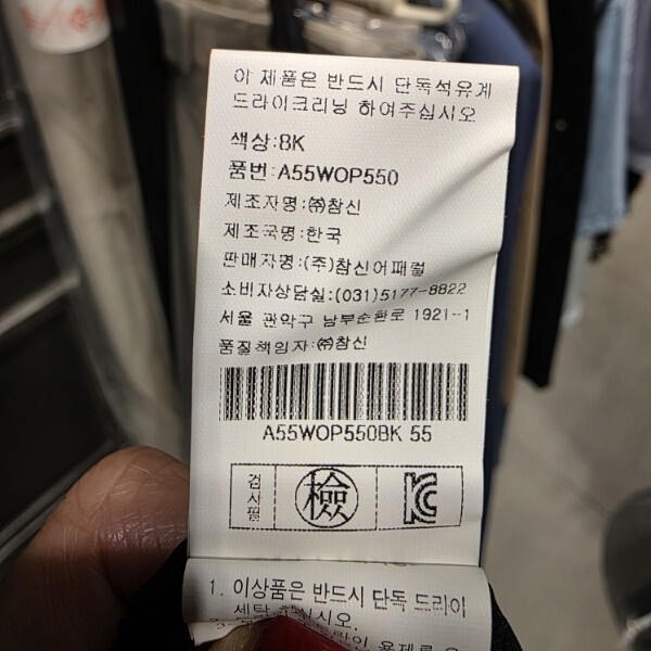 세탁방법 및 취급시 주의사항 : 드라이크리닝